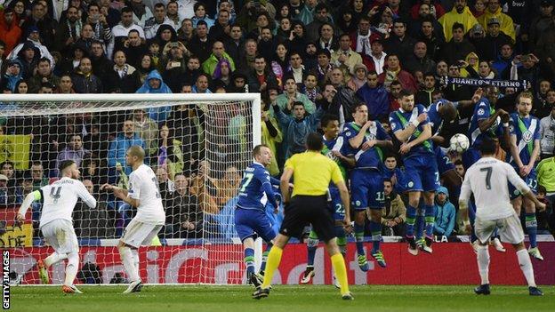 He completed his hat-trick and sealed Real's place in the last four with a 25-yard free-kick 13 minutes from time at the Bernabeu Stadium.